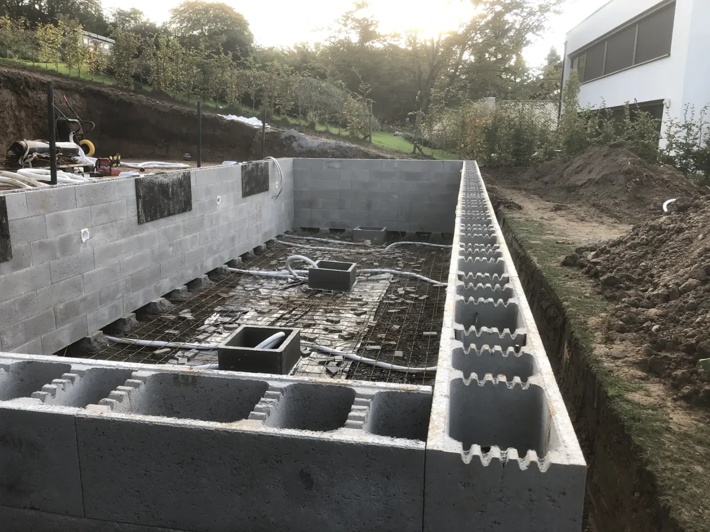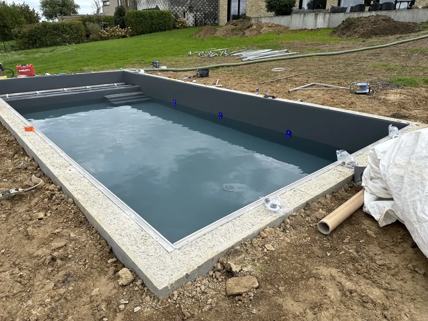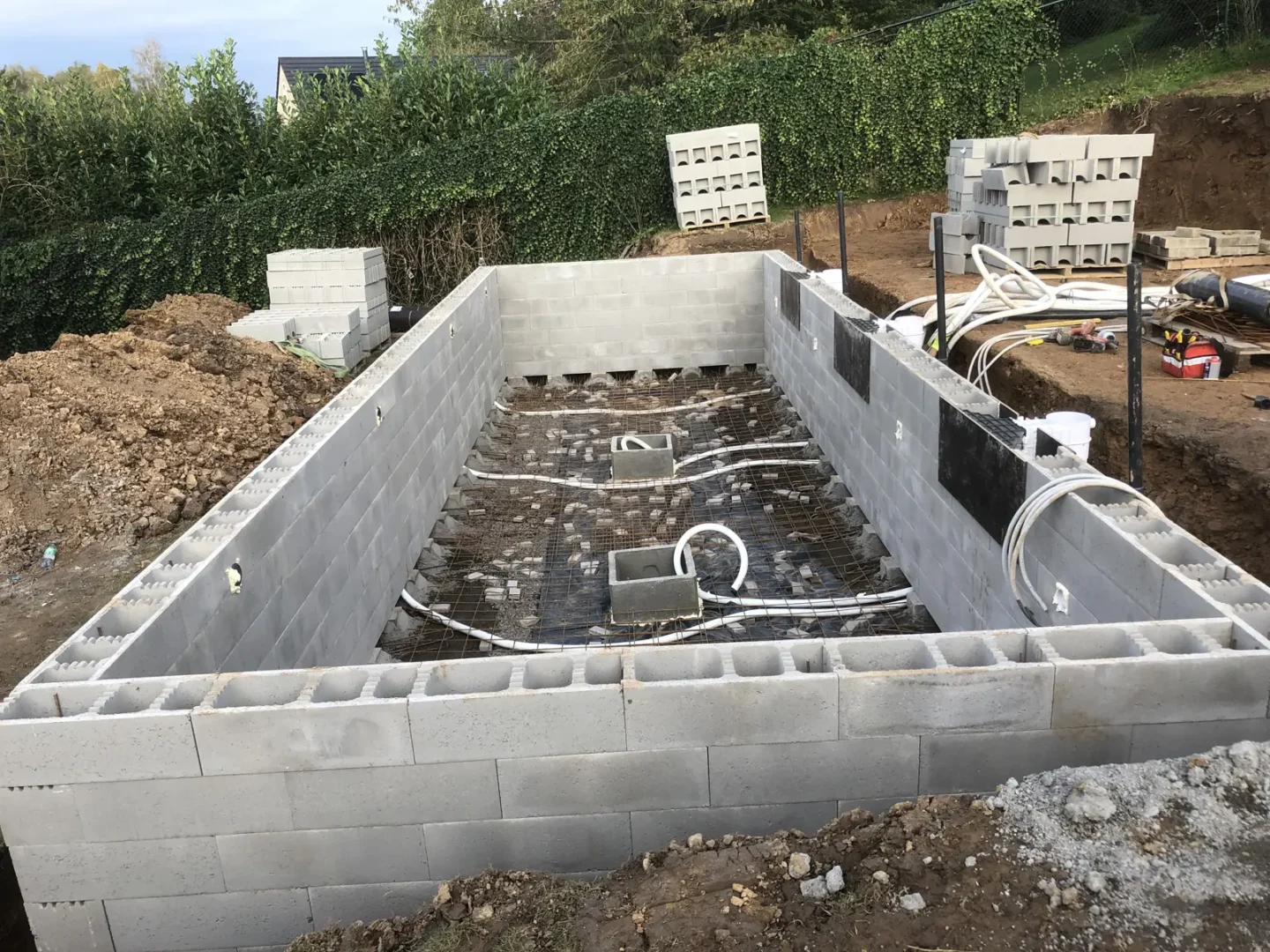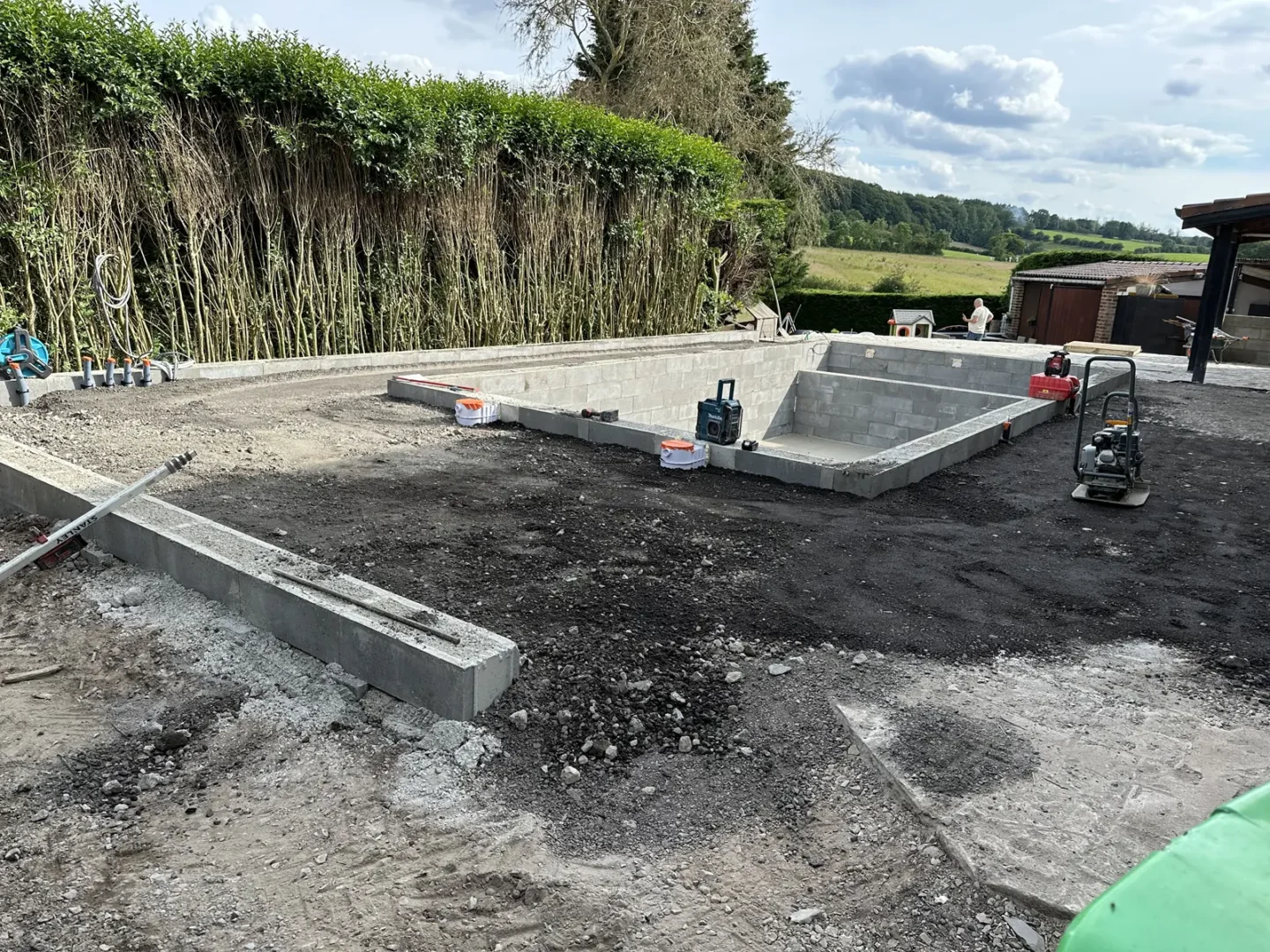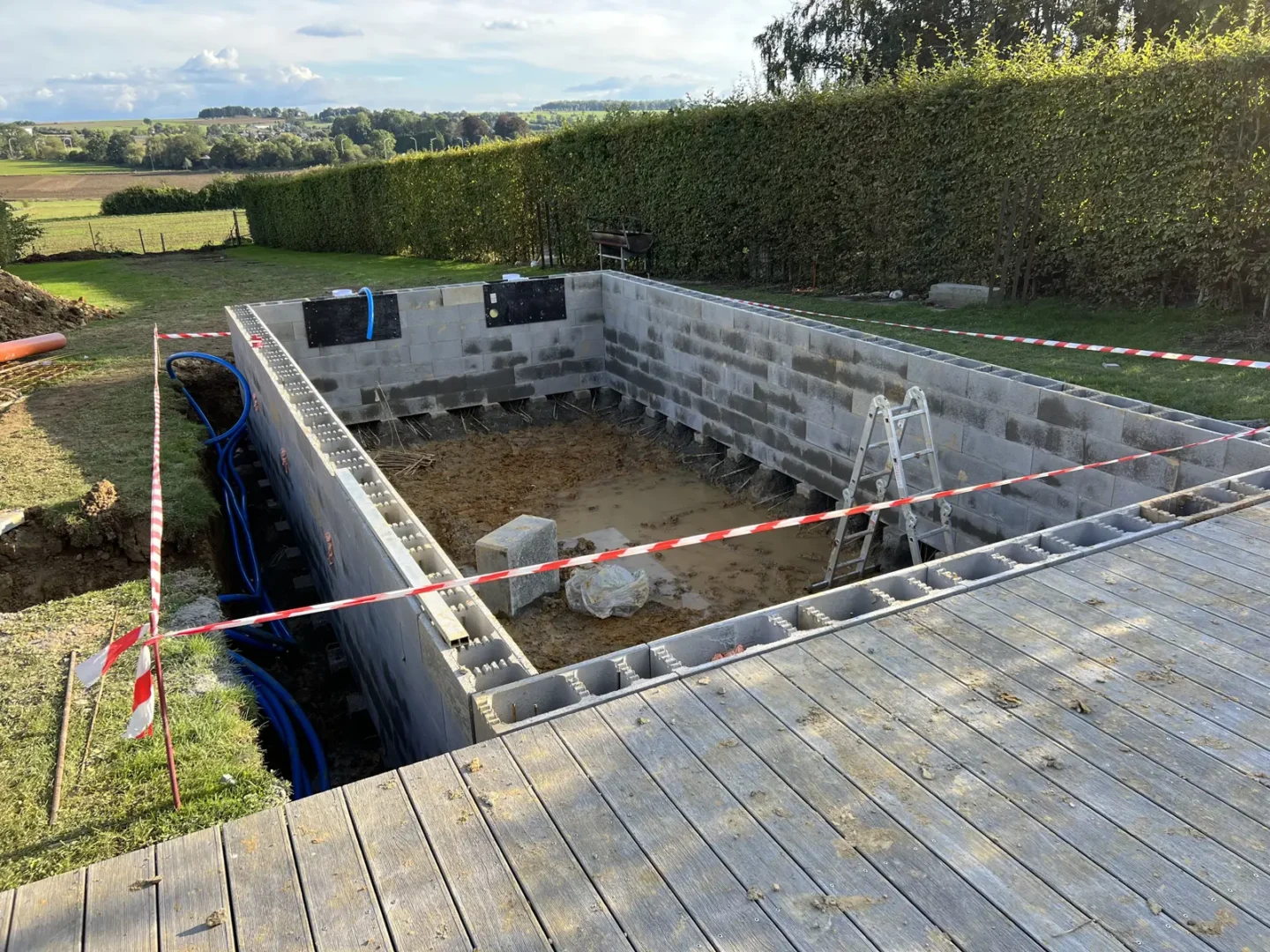Réalisation d’une piscine Ligne d’Ô à Assesse, conçue pour s’ouvrir sur le paysage rural namurois. Ce dossier technique illustre notre maîtrise complète : terrassement en pleine terre, montage d’une structure robuste en blocs béton, installation d’un local technique dernière génération et pose d’un liner gris pour une eau aux reflets naturels. Un projet qui allie technicité et intégration paysagère parfaite.