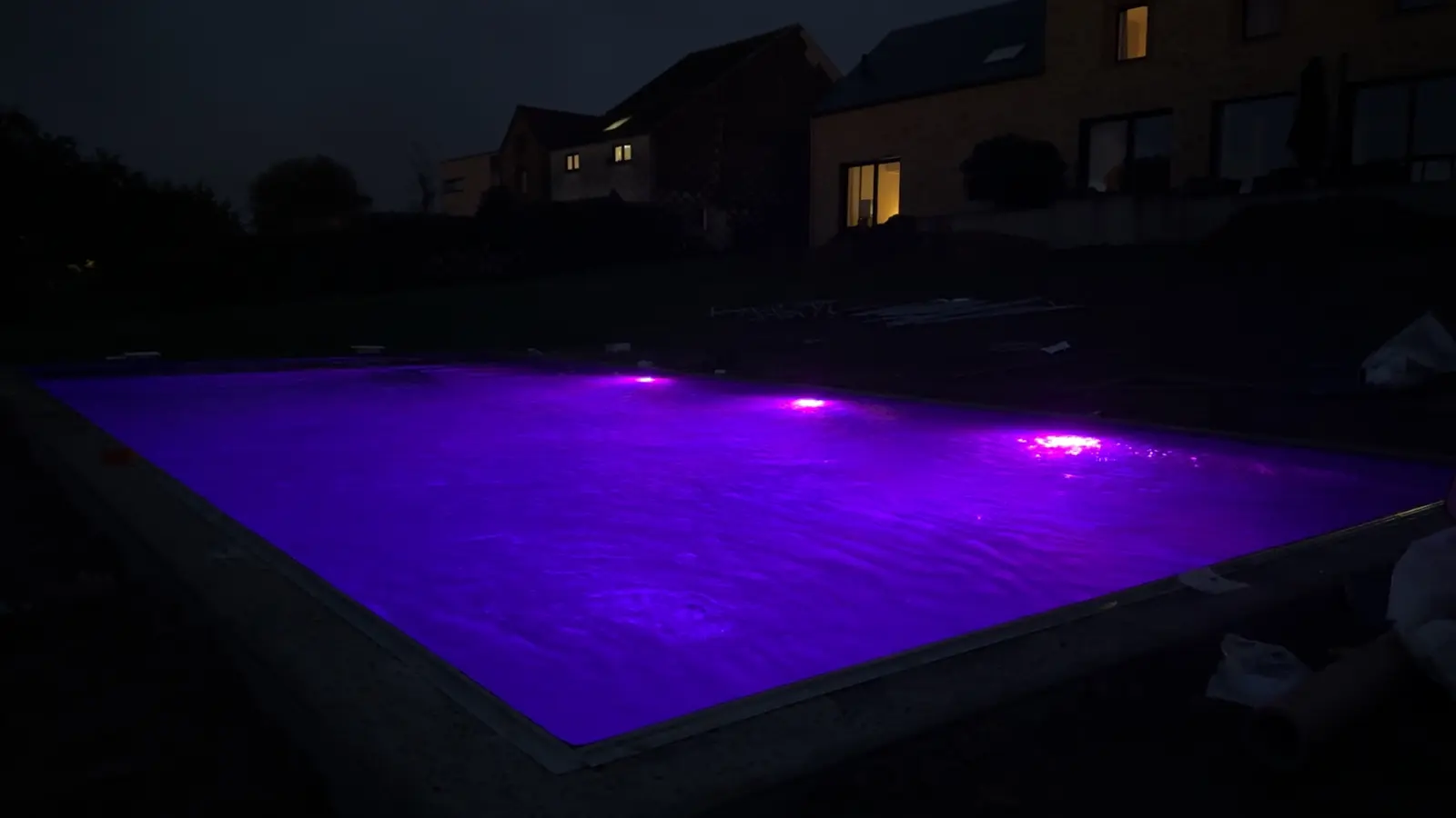 Une réalisation Ligne d’Ô qui sublime une villa contemporaine à Sorinne-la-Longue. Ce chantier technique a nécessité une logistique précise, notamment pour le coulage du béton via une pompe à bras. Cette piscine se distingue par son escalier maçonné sur toute la largeur et son revêtement gris anthracite qui offre une eau profonde et élégante. Le clou du spectacle reste l’éclairage subaquatique LED coloré, transformant le jardin en un espace féérique dès la tombée de la nuit.