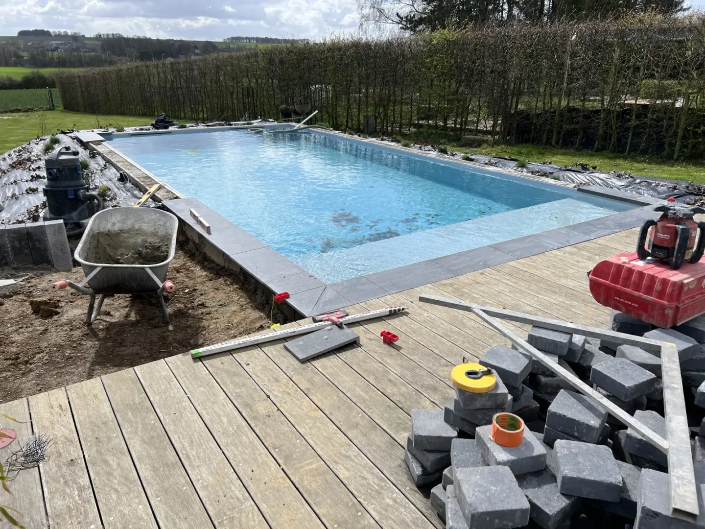 Découvrez cette superbe réalisation signée Ligne d’Ô au cœur de la région d’Andenne. Ce projet illustre parfaitement l’intégration d’une piscine moderne au sein d’une propriété de caractère en pierres naturelles. De l’excavation technique à la pose d’un système de filtration automatisé, nous avons accompagné nos clients pour transformer leur jardin en un espace de détente haut de gamme. Une construction robuste et esthétique qui sublime le paysage andennais.Nous privilégions des matériaux nobles et de haute qualité pour donner vie à vos projets. Opter pour une piscine en béton, c’est choisir une structure indestructible capable de traverser les décennies sans perdre de sa superbe. Alliant robustesse technique et esthétique intemporelle, le béton offre une liberté de forme totale pour s’adapter parfaitement à votre terrain.