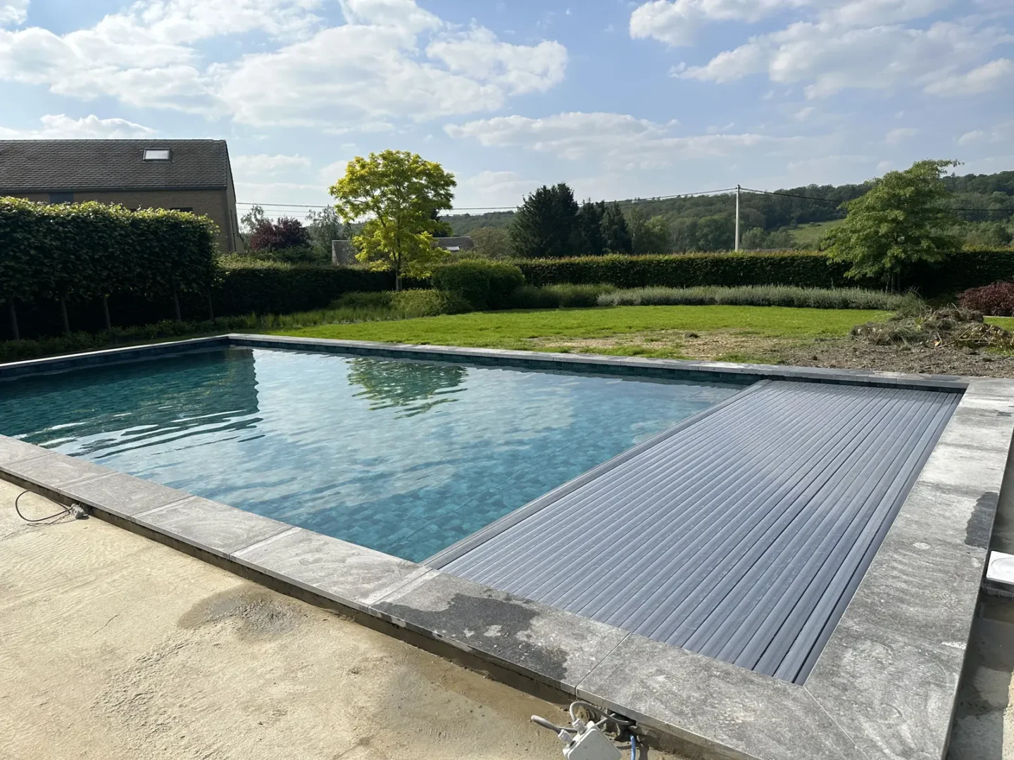 Une réalisation magistrale signée Ligne d’Ô à Faulx-les-Tombes. Ce chantier illustre notre capacité à gérer des projets de piscine complexes, de l’étude de terrain par drone jusqu’à la mise en place d’un volet de sécurité immergé. Avec sa structure en béton armé, son local technique sur-mesure et son intégration parfaite dans un vaste jardin paysager, cette piscine devient l’élément central de la propriété.